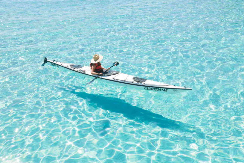 Staying low (below your subject’s eye level) helps create more dramatic images. Float calmly, move slowly, and avoid splashing or kicking up sand.