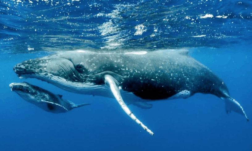 In these waters, calves take their first breaths, learn to swim, and begin nursing—sometimes consuming hundreds of pounds of milk each day. The calm environment allows mothers to teach their young vital skills before the long migration back to colder, feeding grounds.