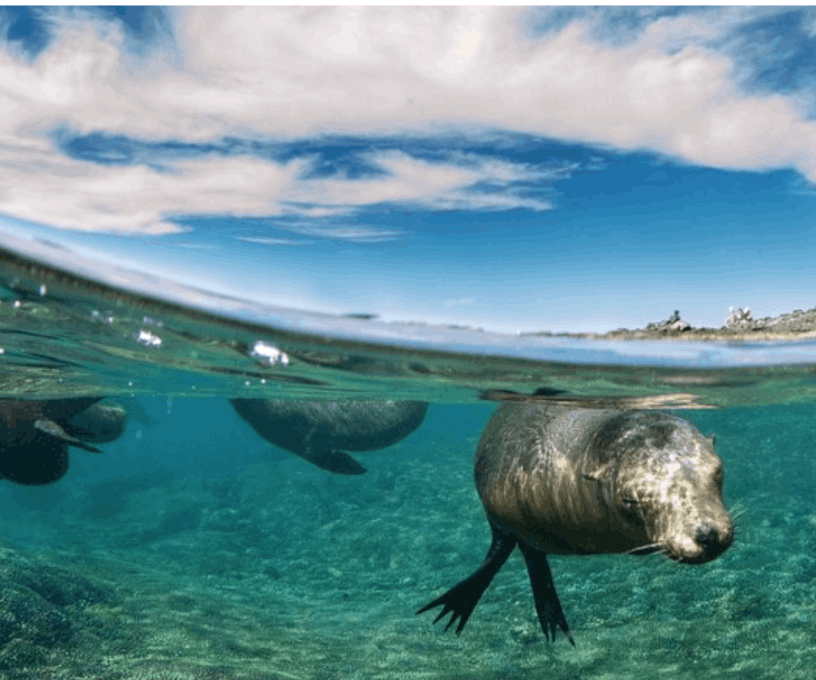 As our boat slowed near the island, I could already hear them before I saw them—their playful barks echoing off the rocks. Dozens of sea lions lounged along the shoreline, some stretched out in the sun, others tumbling into the water with effortless grace. The water around San Rafaelito was calm and impossibly clear, giving me a sense of comfort before I even put my mask on.