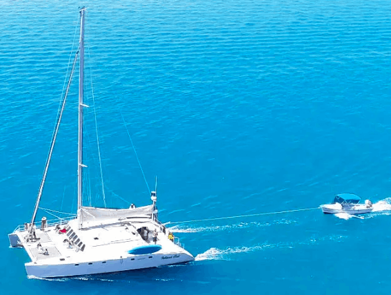 One of the coolest practical features of a catamaran is its shallow draft. Because the boat’s weight is spread across two hulls, it doesn’t need to sit deep in the water. This allows catamarans to access shallow bays, protected coves, and pristine beaches that deeper boats simply can’t reach.