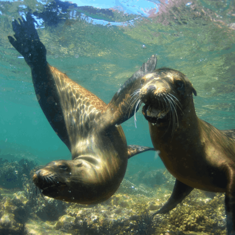 •Sea lions spinning and darting underwater like torpedoes