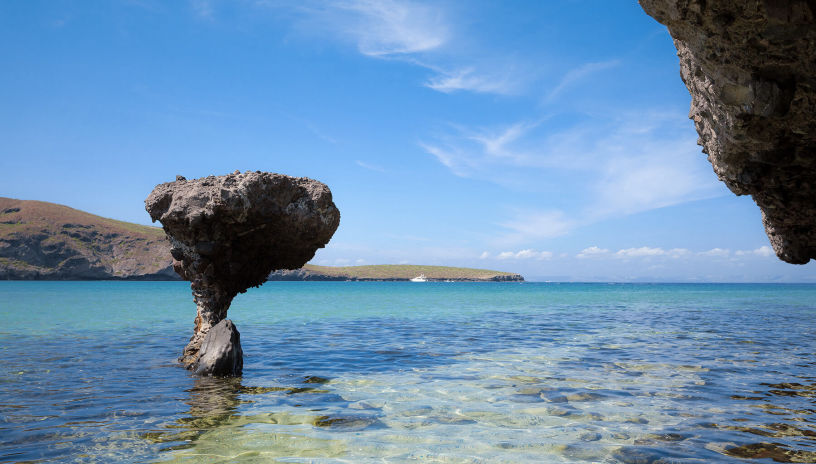 One of the most recognizable landmarks at Balandra is “El Hongo,” the famous mushroom-shaped rock that sits near the shoreline. This natural sculpture has become the symbol of the beach and is a favorite spot for photos, especially early in the morning or during golden hour when the light softens and the crowds are lighter.