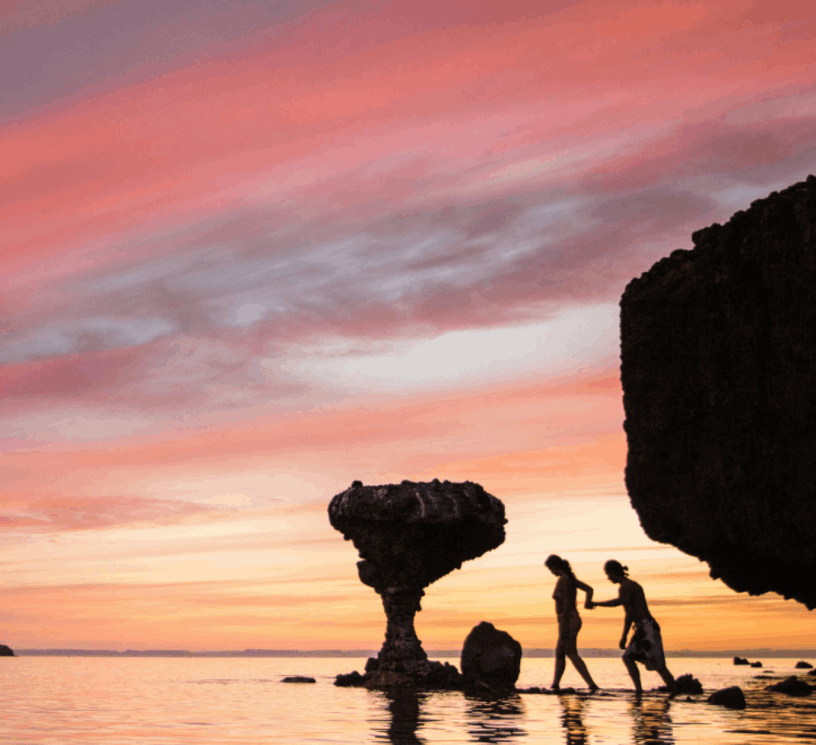One of the most magical things about Balandra is how it transforms throughout the day. In the morning, the water looks like polished glass, reflecting the surrounding mountains. By afternoon, the sunlight turns the sea into a brilliant mix of blues and greens. At sunset, the entire bay softens into gold, pink, and lavender hues as the desert landscape cools.