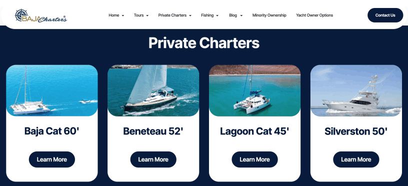 The moment you arrive on the Baja Charters website, everything is laid out clearly. Tours, private charters, and fishing experiences are organized so you can quickly find exactly what you’re looking for. Each option includes detailed descriptions, photos, and key information, helping you choose the right experience for your group without feeling overwhelmed.