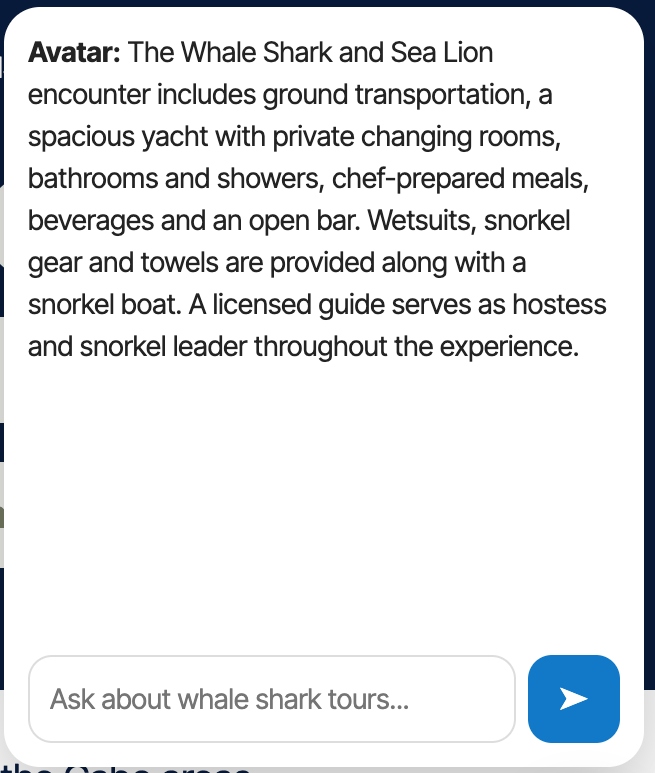 Planning an unforgettable whale shark experience in Baja should feel exciting — not confusing. That’s why we’re excited to introduce a brand-new feature on our website: our new chatbot.