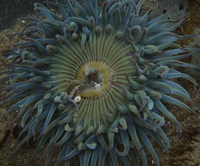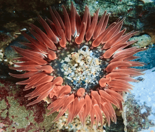 Many Sea of Cortez anemones hang out where sunlight hits: tide pools, shallow reefs, and rocky shelves. They can also survive in places where the waves crash hard, gripping tight to stone like stubborn little gladiators.