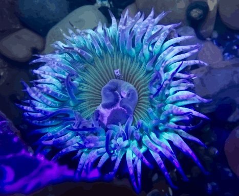 Many anemones have fluorescent pigments that shimmer when hit with ultraviolet light. At night, with the right lamp, the reef looks like a neon dream.