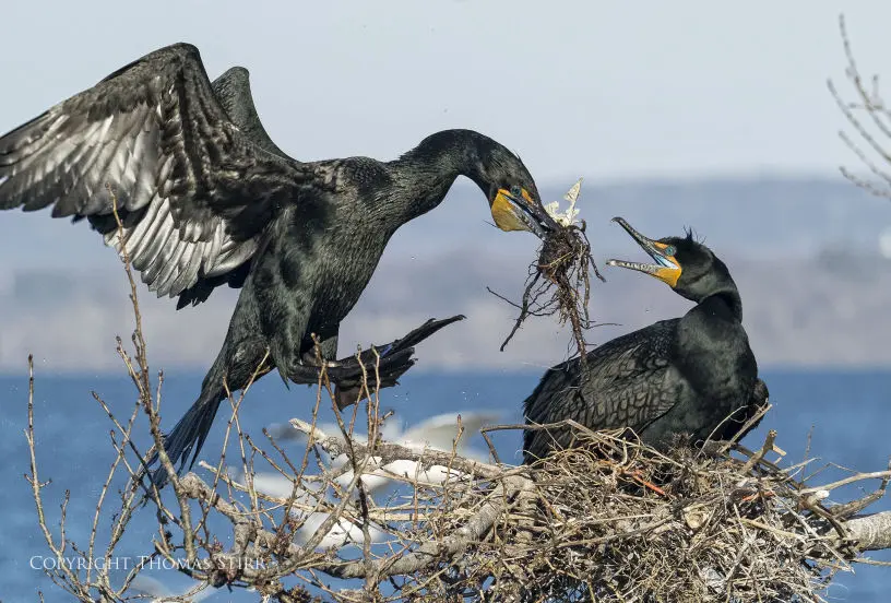 Both male and female cormorants share parenting duties—from nest building to feeding their young, they remain dedicated caregivers throughout the breeding season.