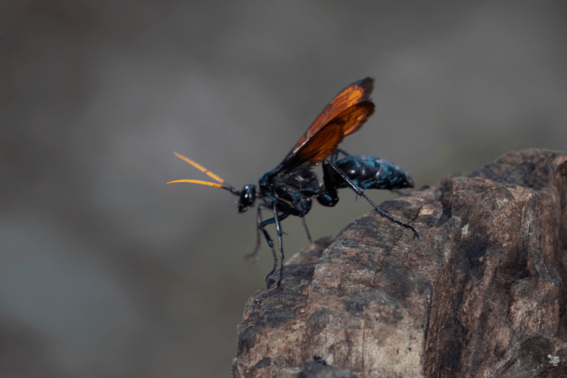 This striking wasp, known for hunting tarantulas, has evolved a slightly smaller body size and darker coloration compared to its mainland cousins. Its presence helps regulate spider populations in the island’s delicate ecosystem.