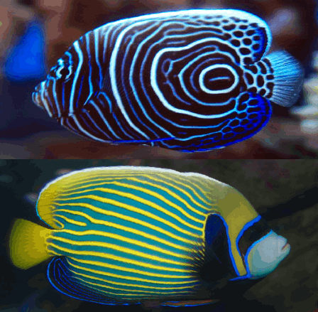 Juvenile angelfish often have bold rings or stripes that disappear as they mature, making it easy to confuse juveniles with entirely different species.