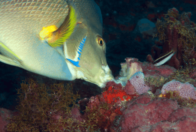 Angelfish feed on algae, small invertebrates, and sponges. Their consumption of algae helps keep reef systems balanced and healthy.