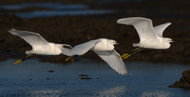 During mating season, many species—including the Snowy Egret—develop elaborate, colorful feather displays, often accompanied by unique calls and courtship dances.