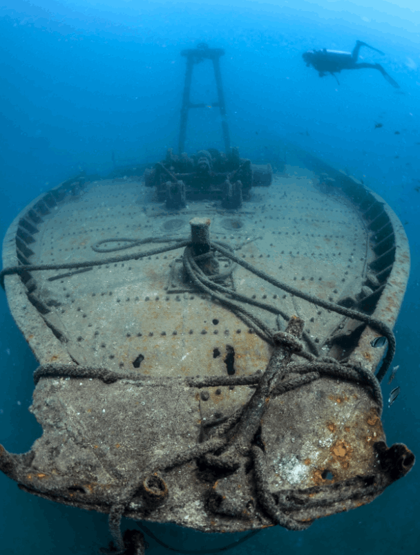 At roughly 185 feet, the Fang Ming is large enough to explore room by room. Divers can swim past cargo holds, hallways, and passageways now flourishing with sea life.