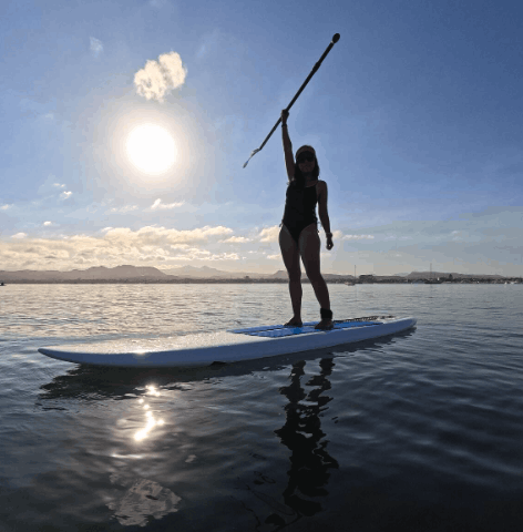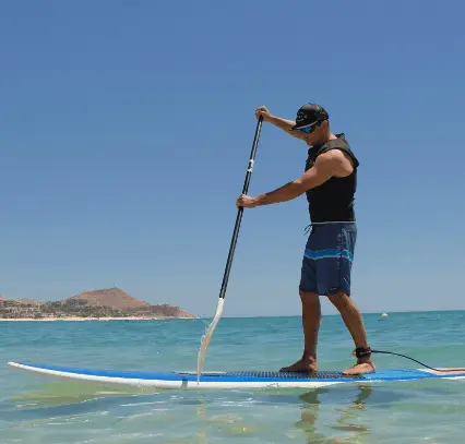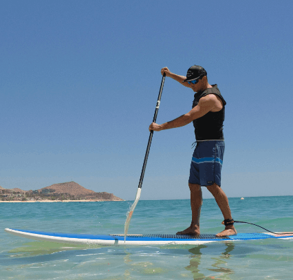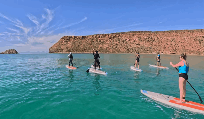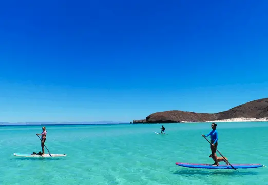 The Sea of Cortez is naturally protected by the Baja Peninsula, which keeps the waves friendly. That means long, smooth glides over crystal water where you can see fish, rocks, and occasionally a curious turtle cruising below your board.