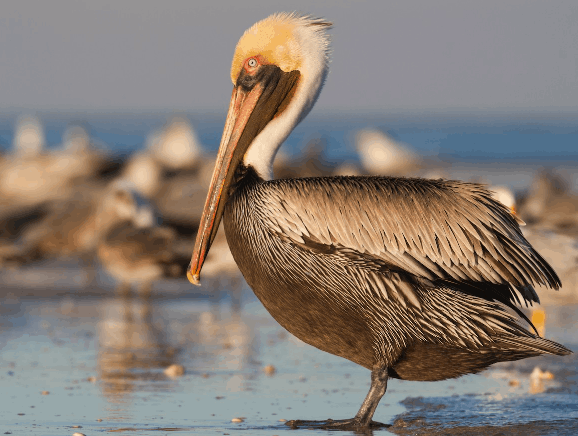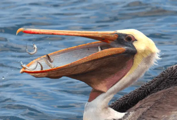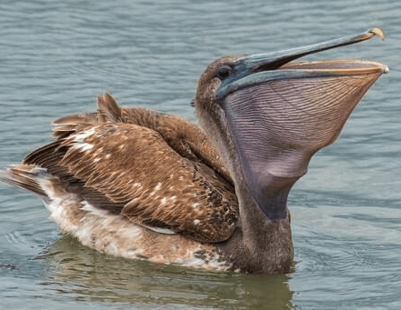 A Brown Pelican’s bill can be over a foot long, and its throat pouch can hold up to 3 gallons of water and fish. That’s like carrying an entire fish market under your chin.