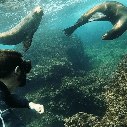 If you’ve ever snorkeled near Espíritu Santo Island or along the Baja coast, you know sea lions love to interact. They’ll swim right up to divers, blowing bubbles, circling playfully, or tugging at fins. They’re incredibly curious and social, often treating humans as part of their underwater playground. Seals, on the other hand, are much more reserved, preferring to observe from a safe distance before disappearing into the depths.