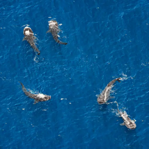 In Cabo waters, most whale sharks range from 15–25 feet (4–8 meters), though larger individuals can occasionally appear.