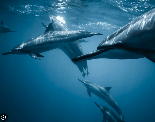 During the day, spinner dolphins often rest or socialize near the surface, but at night, they dive deep to feed on small fish and squid. Their nighttime foraging takes them into deeper waters beyond the coastal shelves.