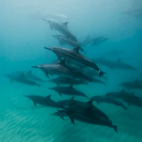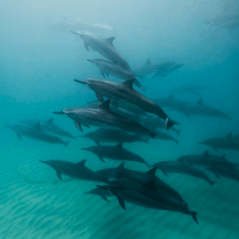 Spinner dolphins are extremely social and often travel in large pods, sometimes numbering hundreds or even thousands. These gatherings can include playful chases, synchronized swimming, and coordinated leaps.