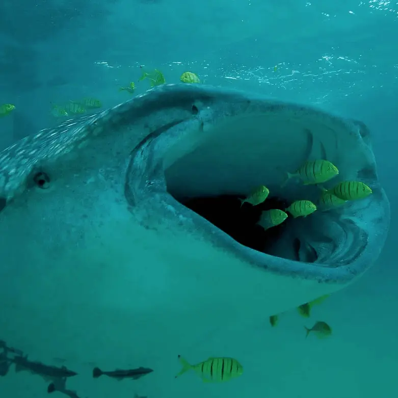 Near Cancún, Isla Mujeres boasts one of the world’s largest whale shark aggregations. Snorkelers often encounter groups of 50 or more whale sharks feeding together, along with manta rays and other pelagic life.