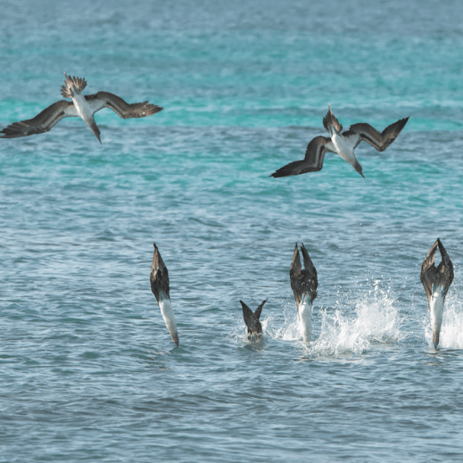 These seabirds are incredible hunters, plunging headfirst into the ocean at speeds of up to 60 miles per hour. They often dive in groups, making a synchronized splash as they hunt schools of fish.