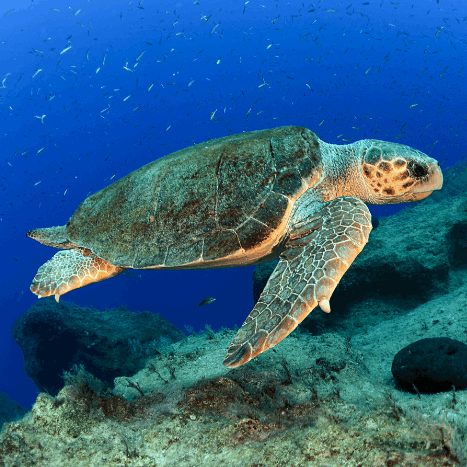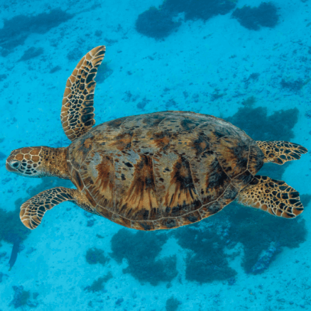 The Green sea turtle is especially common around Bahía Magdalena and La Paz Bay, where they feed on lush seagrass beds. These areas serve as vital “turtle kitchens,” helping the population recover after years of decline.
