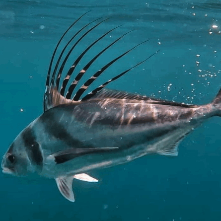 Easily recognized by their dramatic, spiky dorsal fin, roosterfish are one of Baja’s most iconic inshore catches. They patrol sandy beaches and rocky shorelines, offering incredible topwater strikes. While not typically eaten, they’re prized for their thrilling fight and photogenic looks.
