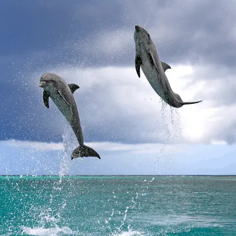 With their sleek, streamlined bodies, dolphins can reach speeds of 20 miles per hour (32 km/h) or more. Their playful leaps, flips, and tail slaps aren’t just fun to watch—they also serve purposes like communication and conserving energy while traveling.