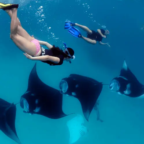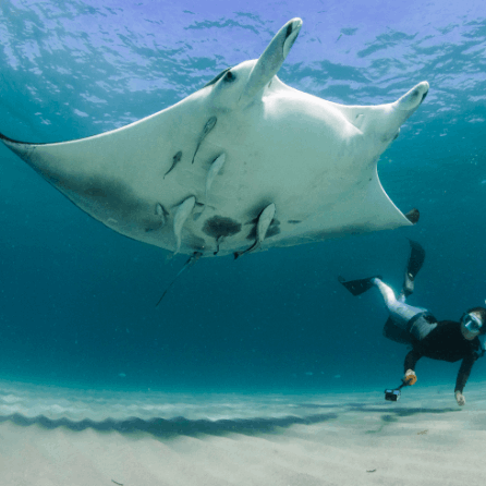👉 In fact, mantas are often curious, gliding gracefully around divers as if inspecting them.