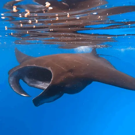 Incredible but true—mantas have passed the “mirror test,” a classic experiment used to determine self-awareness. This suggests a level of intelligence similar to dolphins, primates, and elephants.