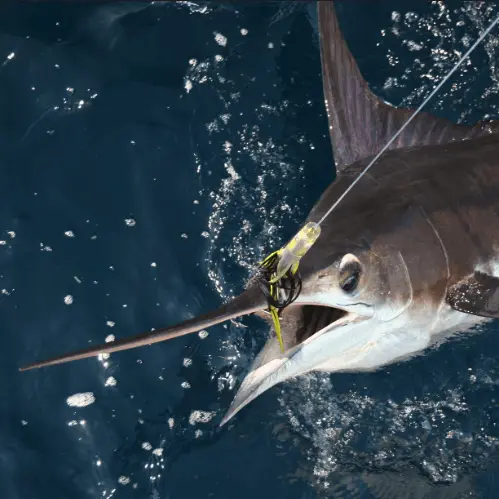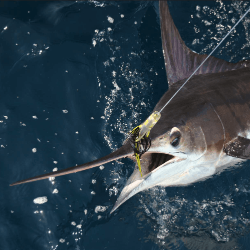 How to Catch: Trolling large artificial lures, rigged ballyhoo, or live bait such as bonito is most effective. Heavy tackle is essential to withstand long battles that can last hours.