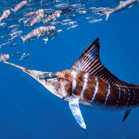 Why Fish Them: Striped Marlin are the most abundant marlin species in Cabo, making it common for anglers to hook several in a single day. Their energetic leaps and surface runs make them a thrill to fight.